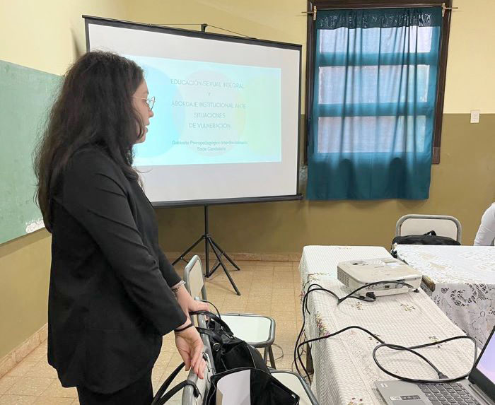 El 17 de Noviembre, profesionales del Equipo GPI de sede Candelaria, visitaron la Escuela N° 13 “Madre de Pueblos en la localidad de Bonpland, a fin de brindar una jornada de capacitación a directivos y docentes respecto de Educación sexual integral y abordaje institucional ante situaciones de vulneración. En representación del GPI de sede Candelaria estuvieron presentes las Licenciadas Melisa Barbar, Sofia Rolón y Bárbara Báez.