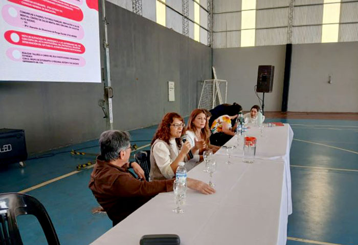 El 18 de diciembre, profesionales integrantes del equipo GPI de sede Eldorado, participaron de una jornada destinada a supervisores y equipos directivos de todos los niveles y modalidades del departamento de Eldorado y localidades aledañas. En el encuentro se trabajaron estrategias relacionadas con la resolución 292/24. La jornada se desarrolló en el polideportivo Hugo Ligorria de la ciudad de Eldorado y conto con la presencia y la apertura de la directora del CGE Prof. Daniela López. En representación del GPI de sede Eldorado estuvieron presentes las Licenciadas Dalila Heinrich, Lic. Solange Borau y Psicopedagoga Débora Giménez.