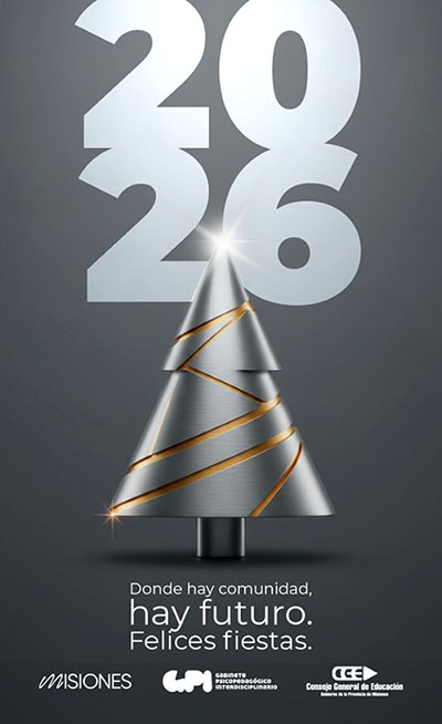 Desde el Gabinete Psicopedagógico Interdisciplinario del Consejo General de Educación de Misiones, queremos desearles una Feliz Navidad y un próspero Año Nuevo. Que esta época esté llena de paz, alegría y momentos compartidos con sus seres queridos. Renovemos nuestras energías para seguir trabajando juntos por el bienestar y la educación integral de la comunidad educativa de Misiones. Gracias por acompañarnos y por ser parte de este camino hacia una educación transformadora.