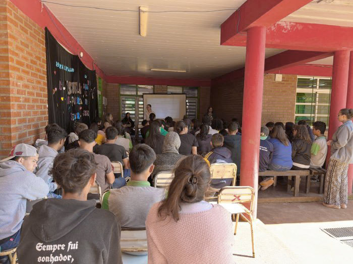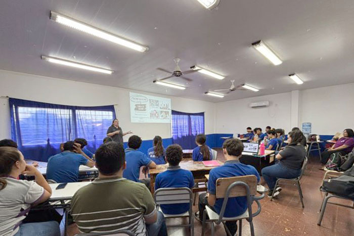 El 05 de Diciembre, parte del equipo GPI de sede San Pedro, visito la Escuela Secundaria Rural mediada por TICs (Esrtic) N° 8500 donde realizaron una jornada de capacitación con alumnos del 5to año. En la ocasión se trabajaron temáticas relacionadas con las Emociones y el Autocuidado, la jornada conto con el acompañamiento de las docente Gladys Valenzuela. En representación del GPI estuvieron presentes la Licenciada Nadia Cáceres Tatarinoff y el Licenciado Lucas Schaffer.