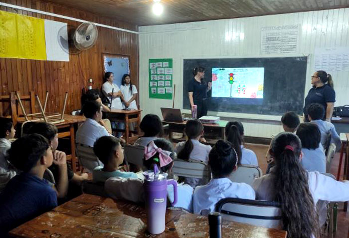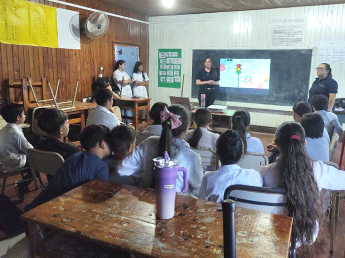El 05 de Diciembre, parte del equipo GPI de sede San Pedro, visito la Escuela Secundaria Rural mediada por TICs (Esrtic) N° 8500 donde realizaron una jornada de capacitación con alumnos del 5to año. En la ocasión se trabajaron temáticas relacionadas con las Emociones y el Autocuidado, la jornada conto con el acompañamiento de las docente Gladys Valenzuela. En representación del GPI estuvieron presentes la Licenciada Nadia Cáceres Tatarinoff y el Licenciado Lucas Schaffer.