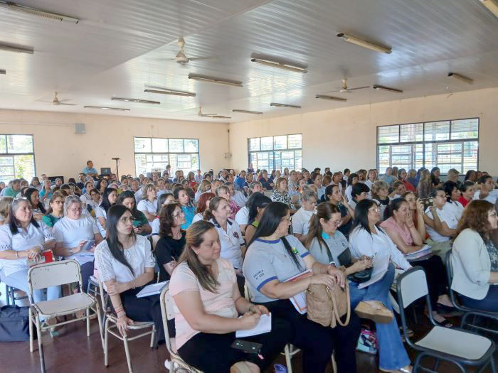 El 18 de diciembre, profesionales integrantes del equipo GPI de sede Eldorado, participaron de una jornada destinada a supervisores y equipos directivos de todos los niveles y modalidades del departamento de Eldorado y localidades aledañas. En el encuentro se trabajaron estrategias relacionadas con la resolución 292/24. La jornada se desarrolló en el polideportivo Hugo Ligorria de la ciudad de Eldorado y conto con la presencia y la apertura de la directora del CGE Prof. Daniela López. En representación del GPI de sede Eldorado estuvieron presentes las Licenciadas Dalila Heinrich, Lic. Solange Borau y Psicopedagoga Débora Giménez.