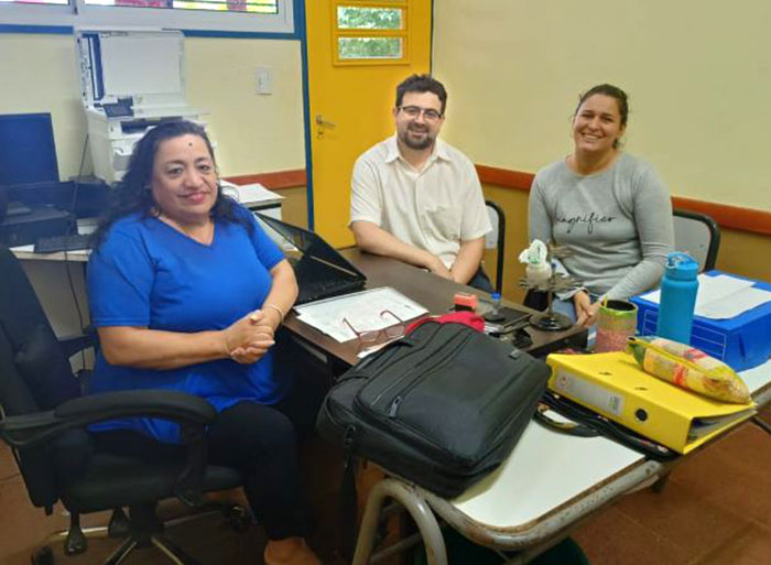 El 11 de Diciembre, profesionales del GPI de sede San Vicente brindaron un espacio de escucha y asesoramiento a la Sra Gisella Cechuk, Directora de la Escuela N° 529. En la ocasión se trabajaron estrategias sobre abordaje de situaciones complejas y acompañamiento institucional. A continuación, en equipo de profesionales recibió en sede la visita de la Sra. Nancy Sofia Da Rosa, regente y parte del Departamento de Aplicación de la Escuela Normal N° 13 a quien se brindo acompañamiento institucional y seguimiento respecto de situaciones complejas que requirieron la activación del protocolo correspondiente. En representación del equipo GPI de sede San Vicente estuvieron presentes las Licenciadas Fiorela Cesar y Andrea Ruiz Lenz.